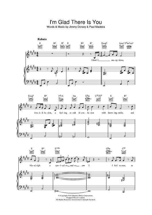 Digital Sheet Music for I'm Glad There Is You (In This World Of Ordinary People) by Jimmy Dorsey, Jamie Cullum, Paul Mertz scored for Piano/Vocal/Chords; id:396184