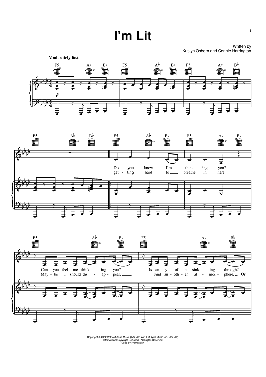 Digital Sheet Music for I'm Lit by SHeDAISY, Kristyn Osborn, Connie Harrington scored for Piano/Vocal/Chords; id:370057