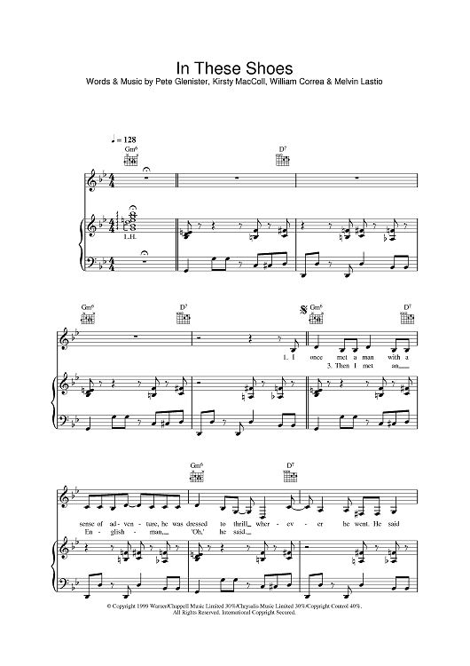 Digital Sheet Music for In These Shoes by Kirsty MacColl, Pete Glenister, William Correa, Melvin Lastio scored for Piano/Vocal/Chords; id:377795