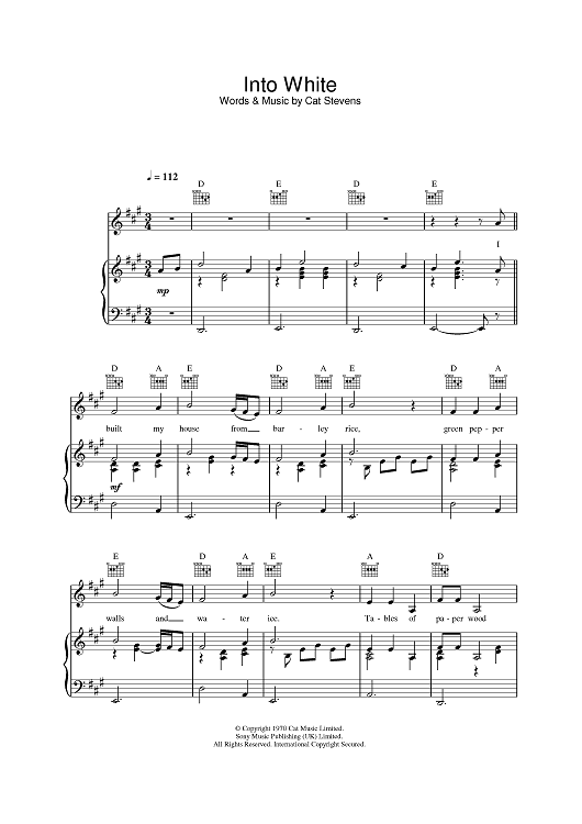 Digital Sheet Music for Into White by Cat Stevens scored for Piano/Vocal/Chords; id:388949