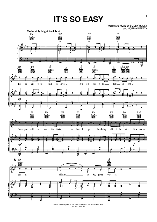 Digital Sheet Music for It's So Easy by Linda Ronstadt, Norman Petty, Buddy Holly, The Crickets scored for Piano/Vocal/Chords; id:390708