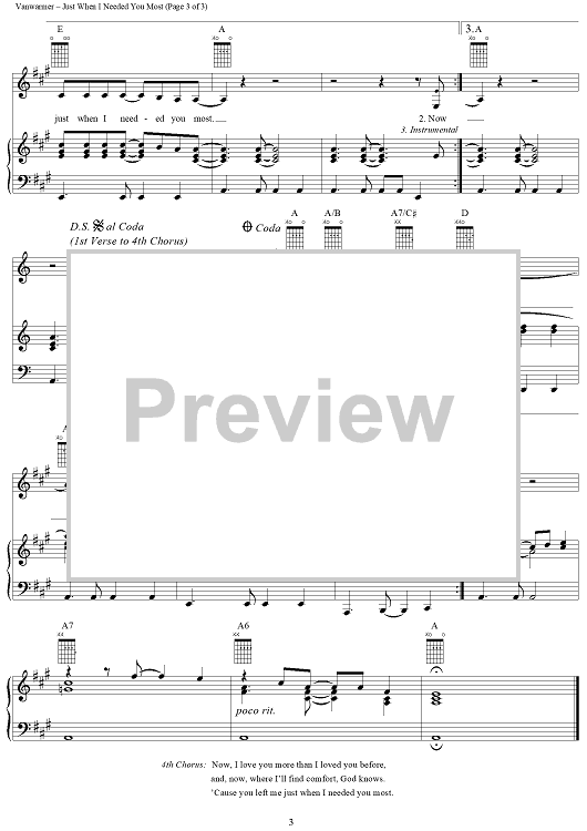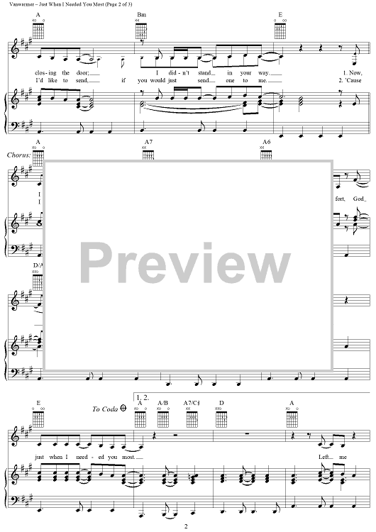 Digital Sheet Music for Just When I Needed You Most by Randy Van Warmer scored for Piano/Vocal/Chords; id:265260