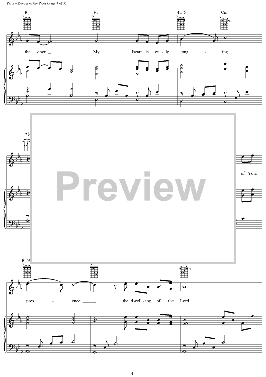 Digital Sheet Music for Keeper of the Door by Twila Paris scored for Piano/Vocal/Chords; id:290066