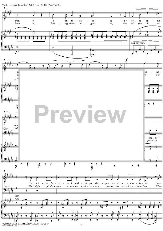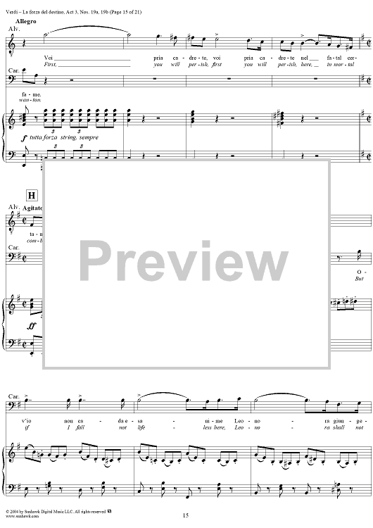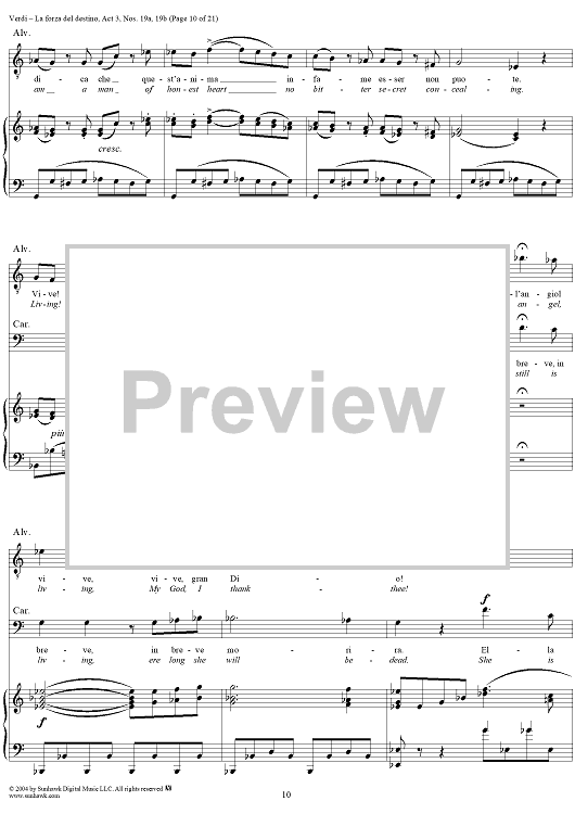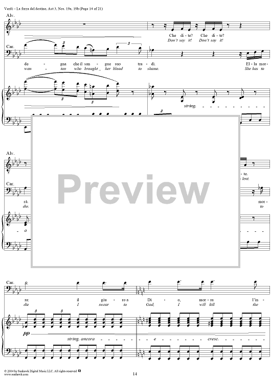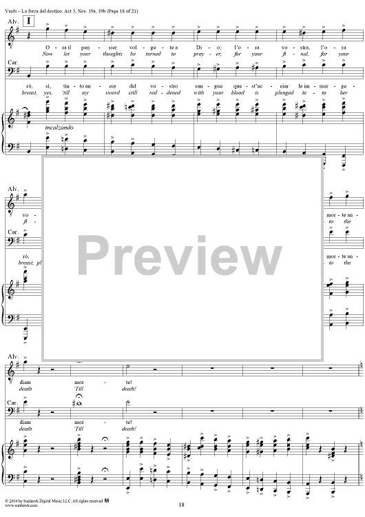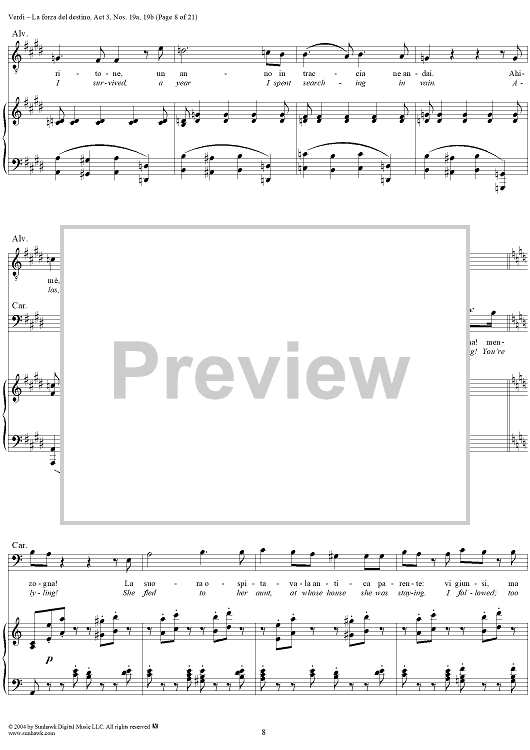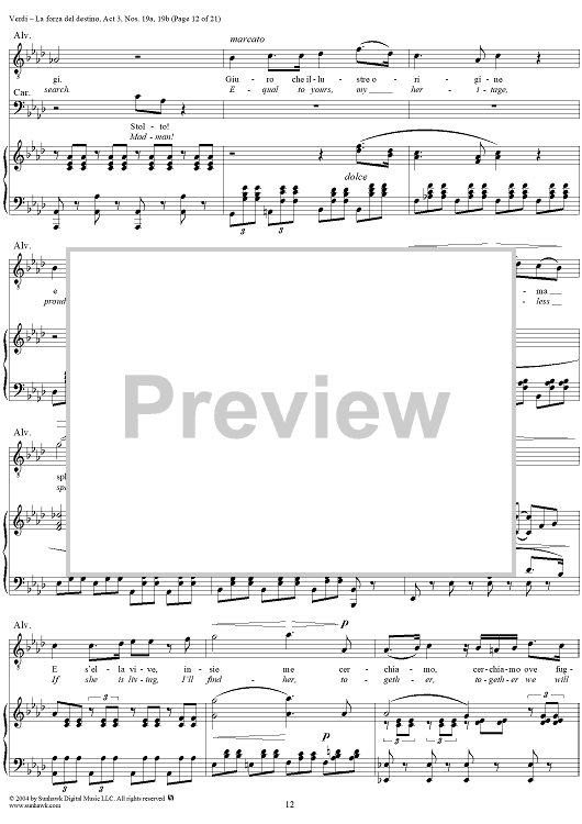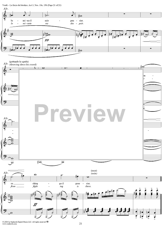 Digital Sheet Music for La forza del destino, Act 3, No. 19, Scene and Duet. "Nè gustare m'è dato" and "Sleale! Il segreto" - Score by Giuseppe Verdi scored for Vocal Score; id:305201