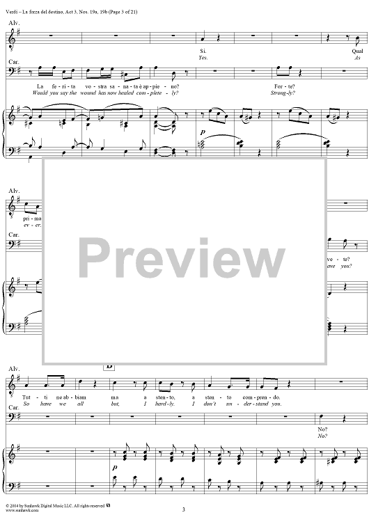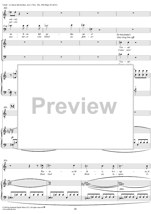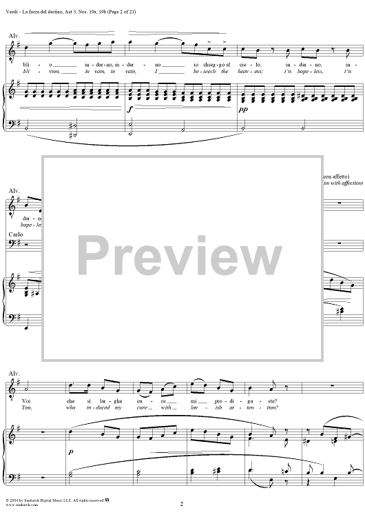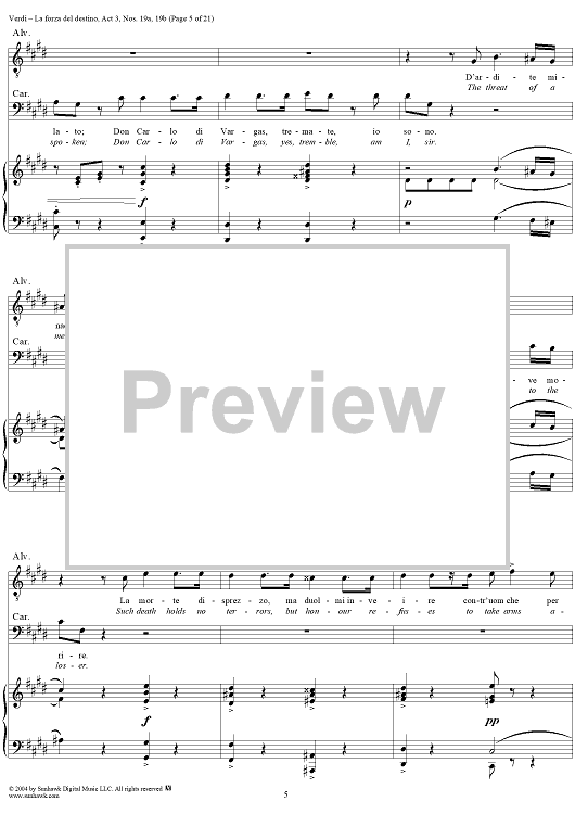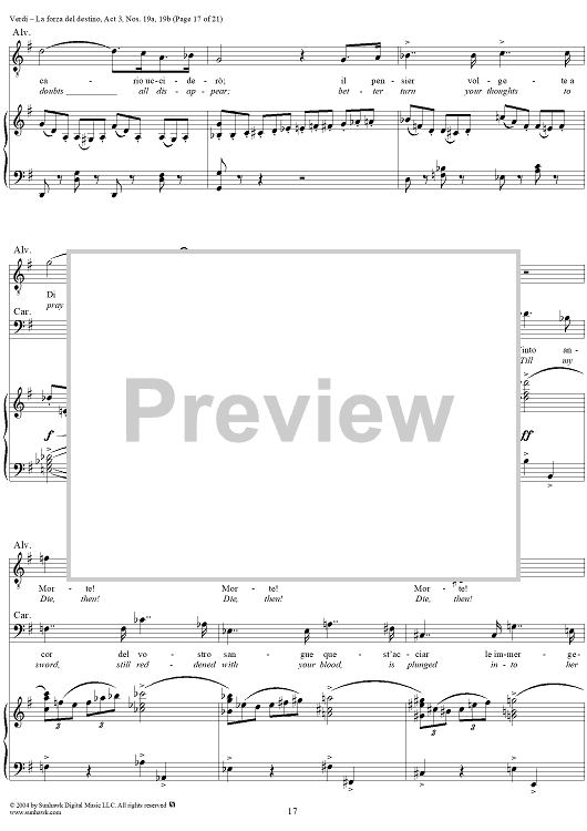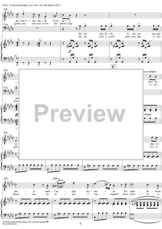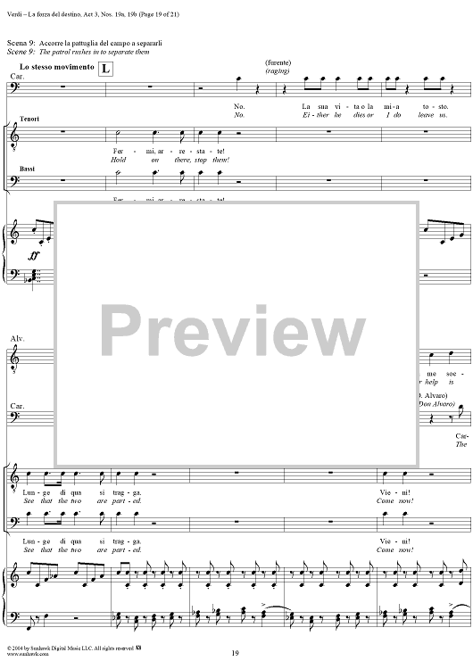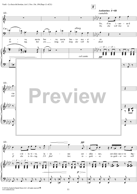 Digital Sheet Music for La forza del destino, Act 3, No. 19, Scene and Duet. "Nè gustare m'è dato" and "Sleale! Il segreto" - Score by Giuseppe Verdi scored for Vocal Score; id:305201