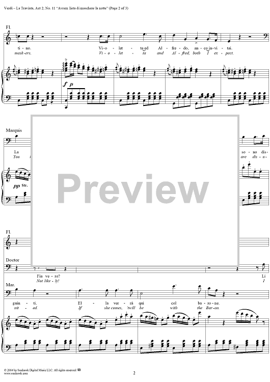 "La Traviata, Act 2, No. 11, Scena. "Avrem lieta di maschere la notte"" Sheet Music by Giuseppe Verdi