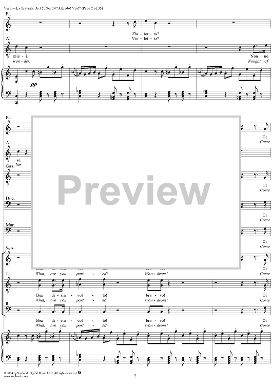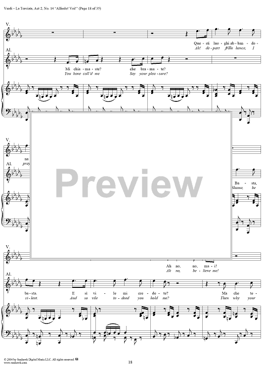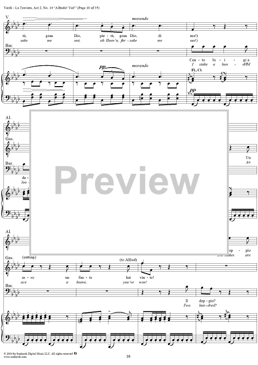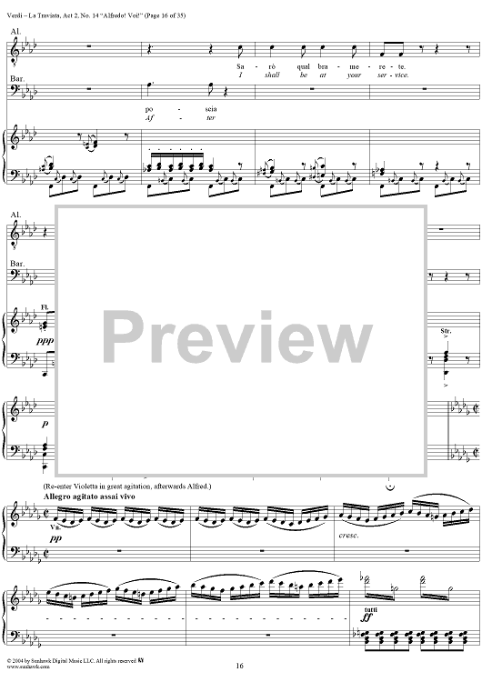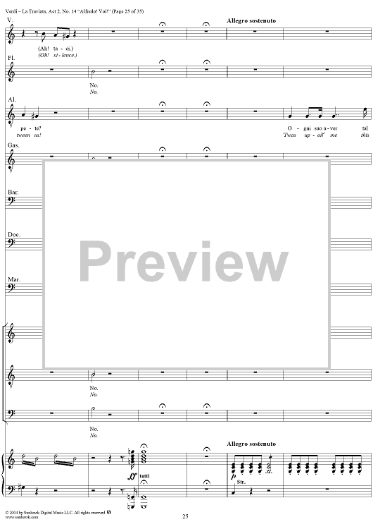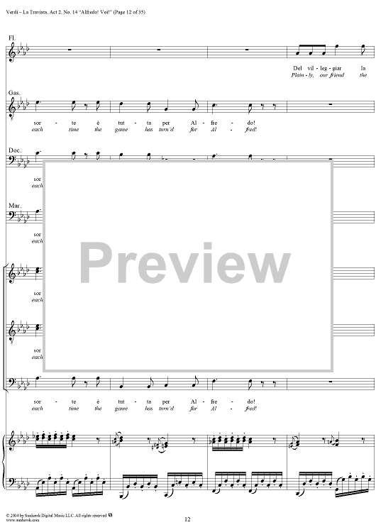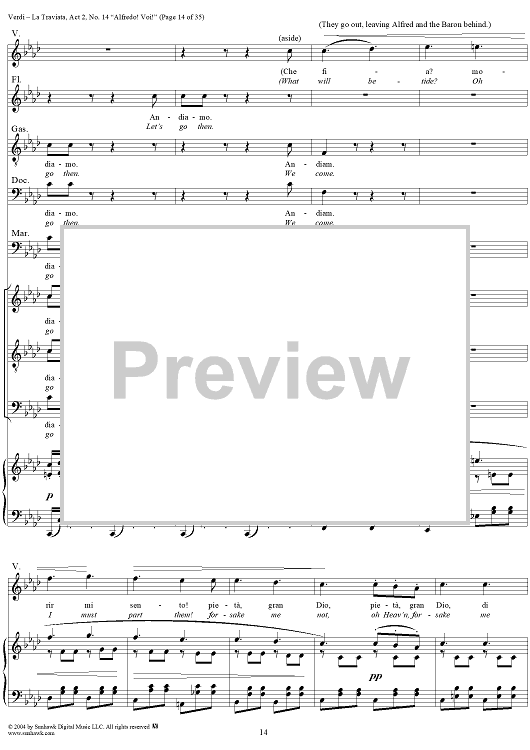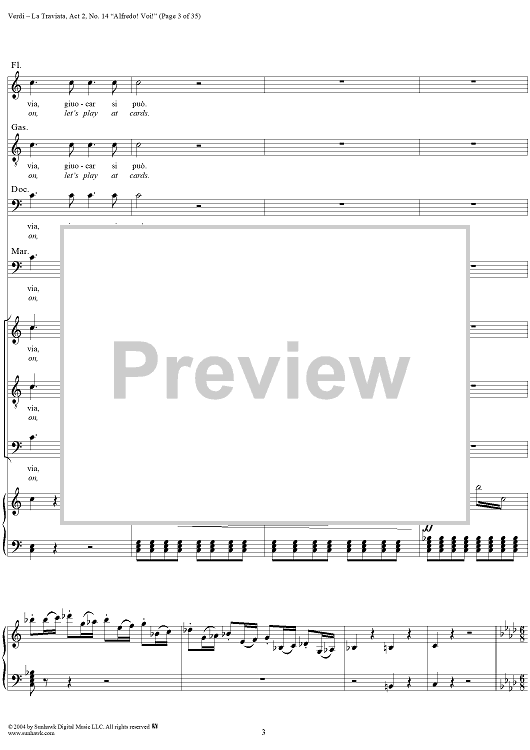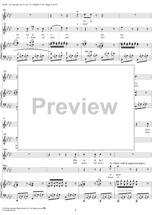 Digital Sheet Music for La Traviata, Act 2, No. 14, Gaming-Scene and Chorus. "Alfredo! Voi!" and "Oh infamia orribile" by Giuseppe Verdi scored for Vocal Score; id:304483