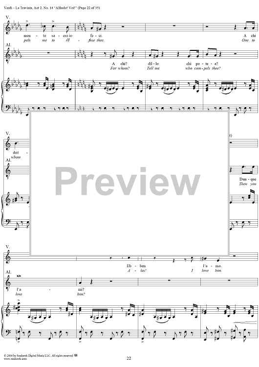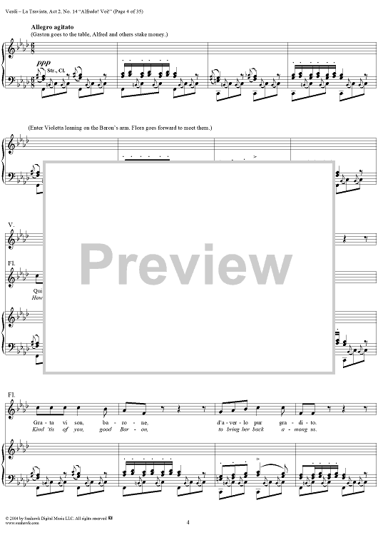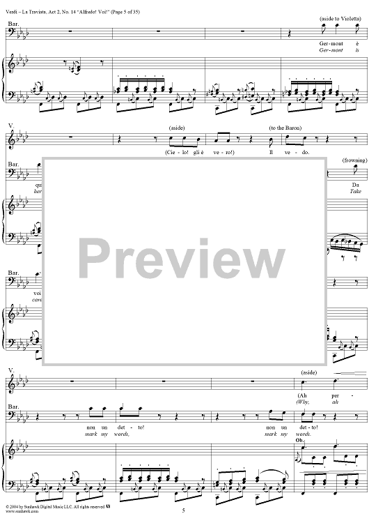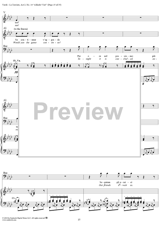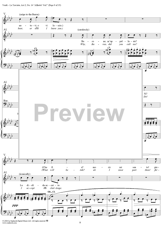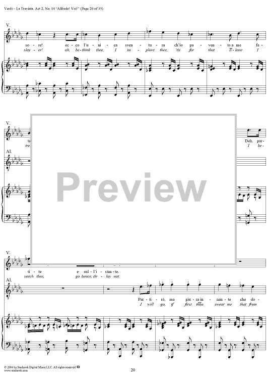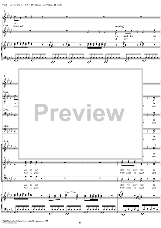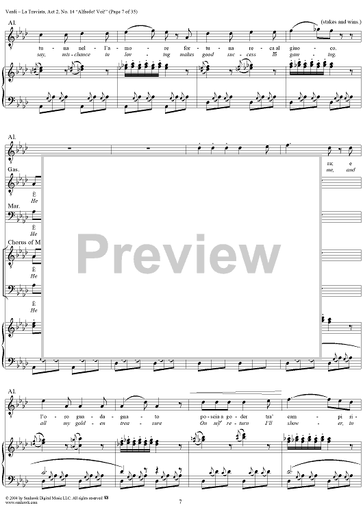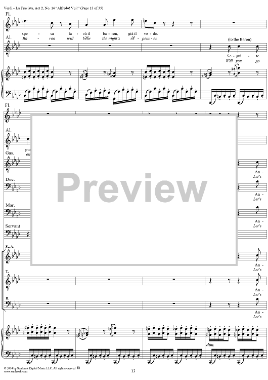 Digital Sheet Music for La Traviata, Act 2, No. 14, Gaming-Scene and Chorus. "Alfredo! Voi!" and "Oh infamia orribile" by Giuseppe Verdi scored for Vocal Score; id:304483
