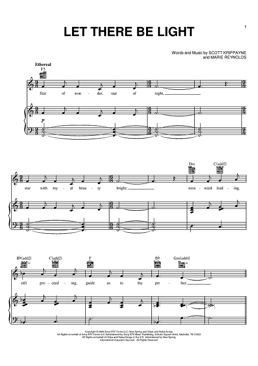 Digital Sheet Music for Let There Be Light by Point of Grace, Scott Krippayne, Marie Reynolds scored for Piano/Vocal/Chords; id:392224
