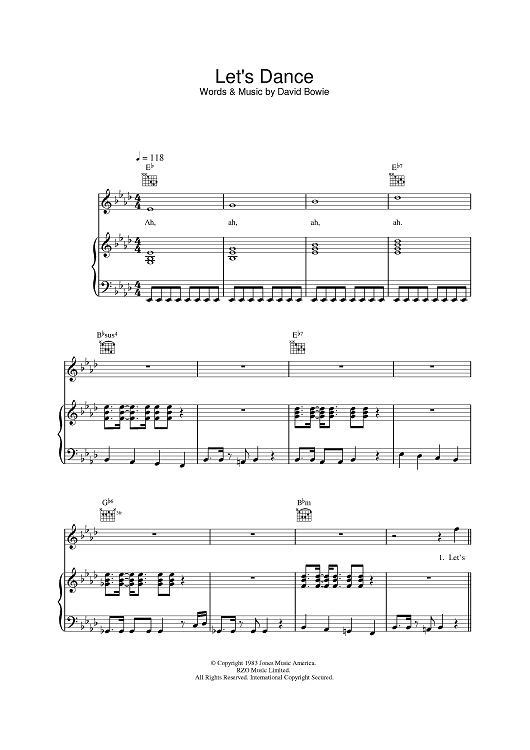 Digital Sheet Music for Let's Dance by David Bowie scored for Piano/Vocal/Chords; id:385521