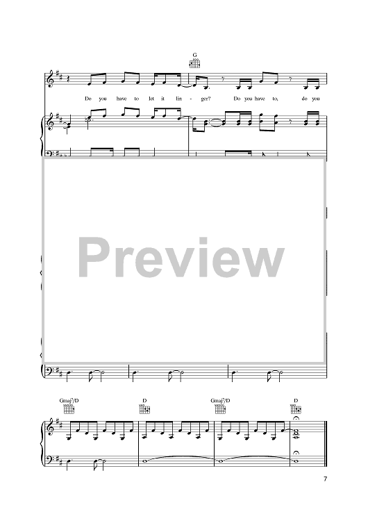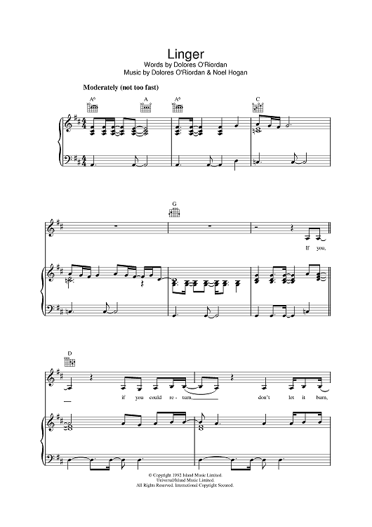 Digital Sheet Music for Linger by The Cranberries, Dolores O'Riordan, Noel Hogan scored for Piano/Vocal/Chords; id:390815