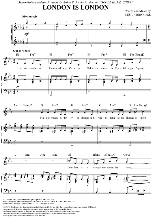 Digital Sheet Music for London Is London by Leslie Bricusse scored for Piano/Vocal/Chords; id:356060