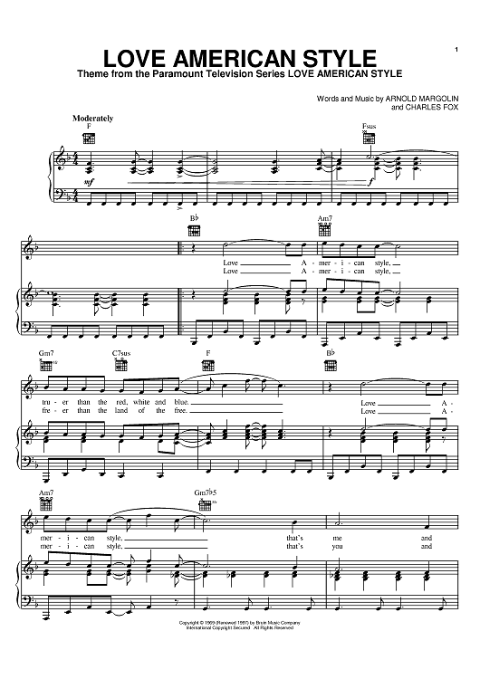 Digital Sheet Music for Love American Style by Charles Fox, Arnold Margolin scored for Piano/Vocal/Chords; id:368376