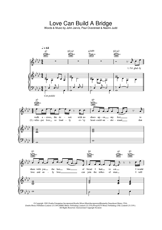 Digital Sheet Music for Love Can Build A Bridge by John Jarvis, Westlife, Naomi Judd, Paul Overstreet scored for Piano/Vocal/Chords; id:395710