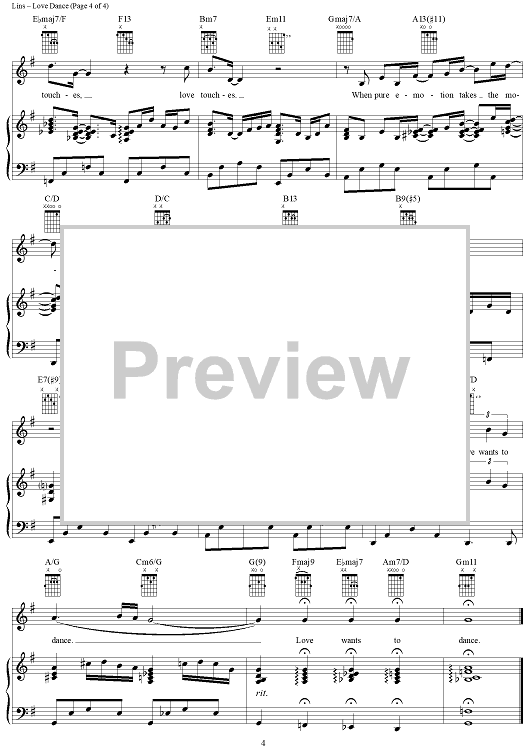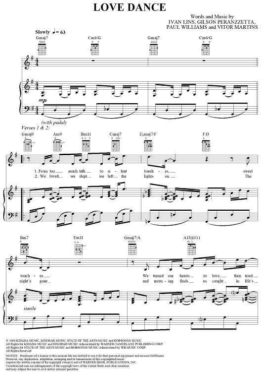 Digital Sheet Music for Love Dance by George Benson, Ivan Lins, Vitor Martins, Paul Williams, Gilson Peranzzetta scored for Piano/Vocal/Chords; id:240793