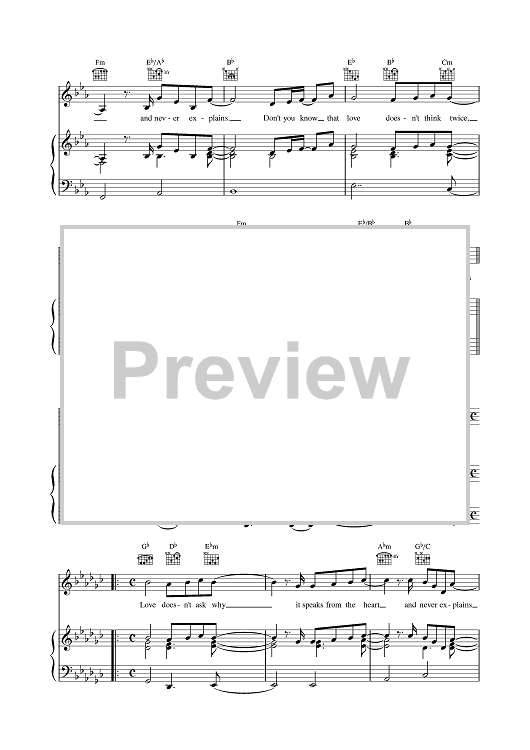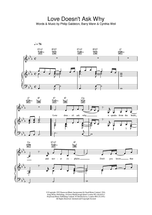 Digital Sheet Music for Love Doesn't Ask Why by Celine Dion scored for Piano/Vocal/Chords; id:379707