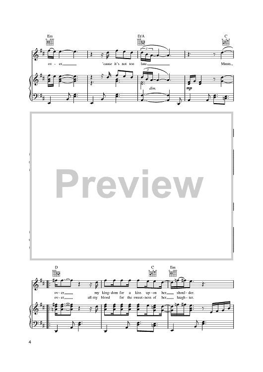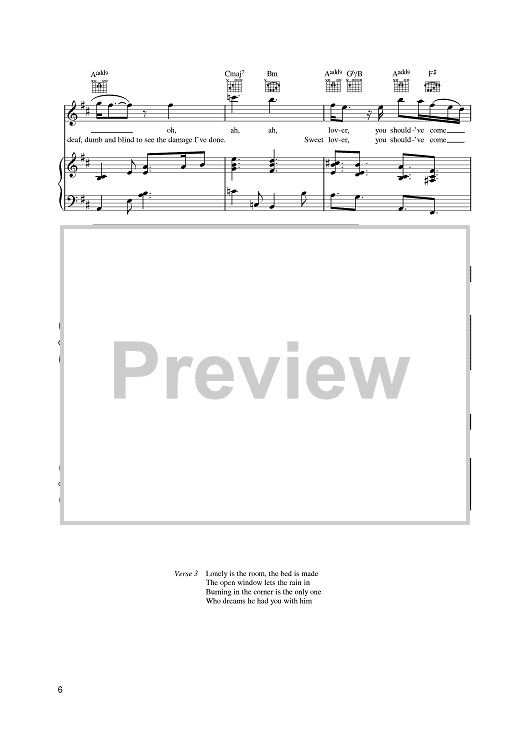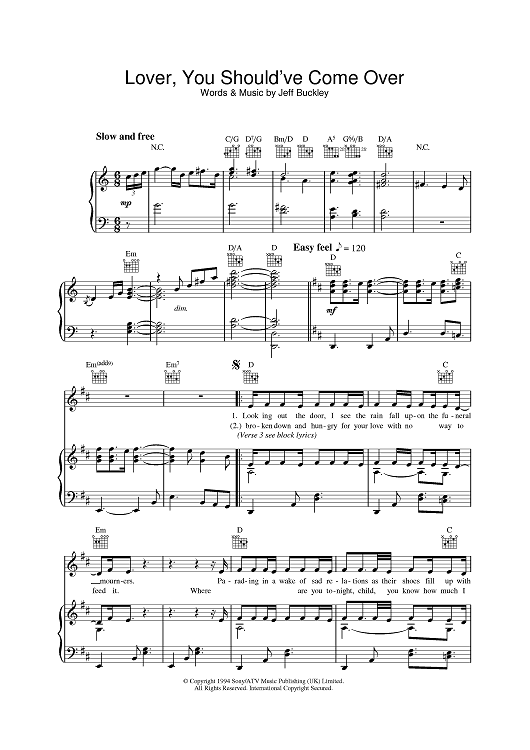 Digital Sheet Music for Lover You Should've Come Over by Jeff Buckley scored for Piano/Vocal/Chords; id:387558