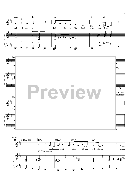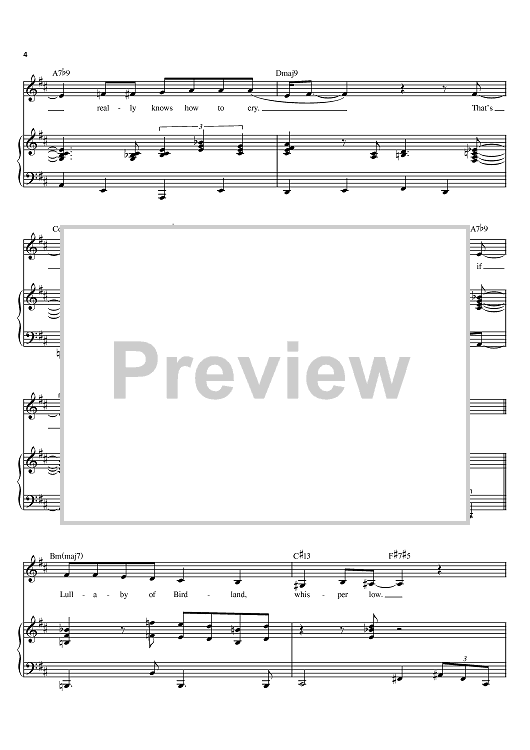 Digital Sheet Music for Lullaby Of Birdland by George Shearing, George David Weiss, Sarah Vaughn scored for Piano/Vocal/Chords; id:380442