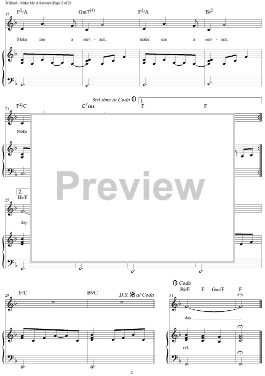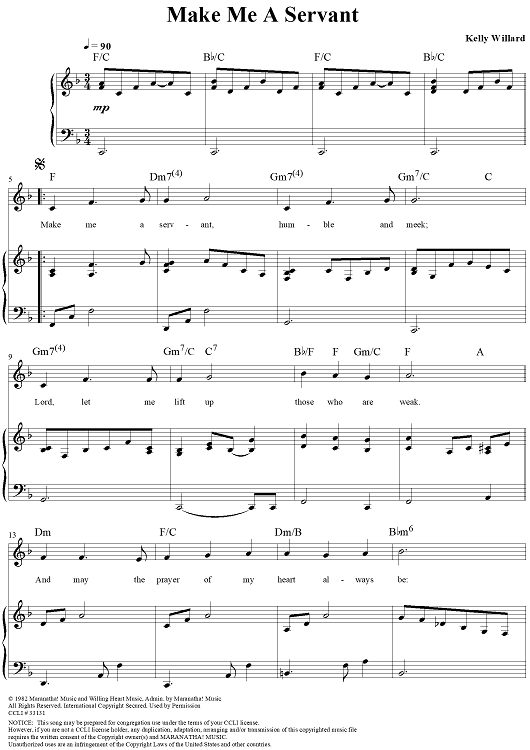 Digital Sheet Music for Make Me a Servant by Kelly Willard scored for Piano/Vocal/Chords; id:215552