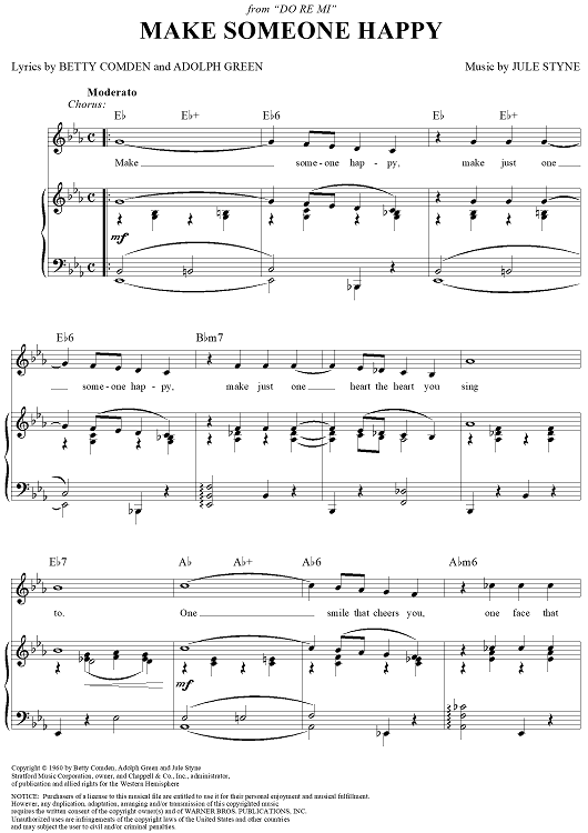 Digital Sheet Music for Make Someone Happy by Judy Garland, Jule Styne, Betty Comden, Adolph Green scored for Piano/Vocal/Chords; id:313437