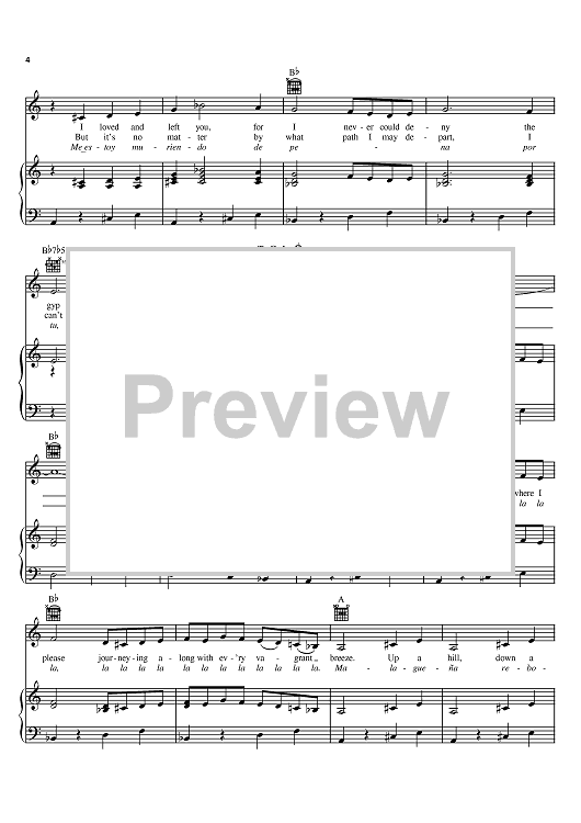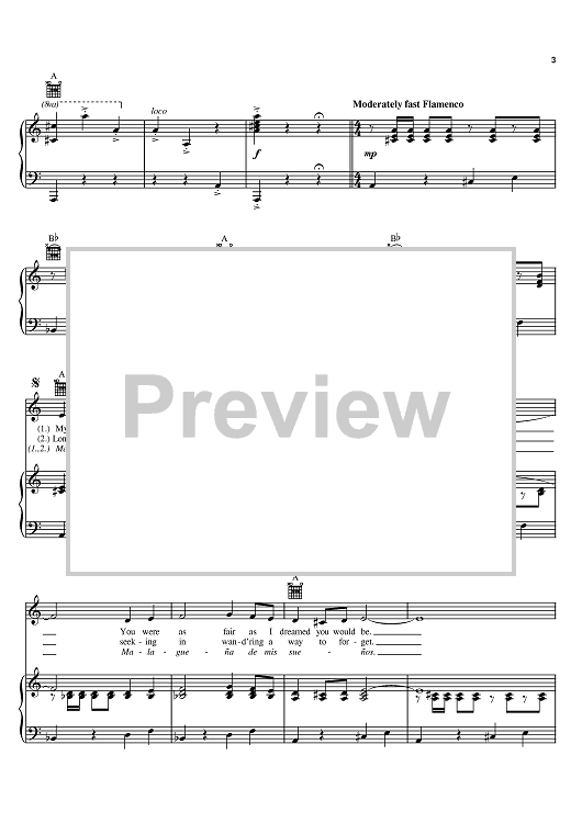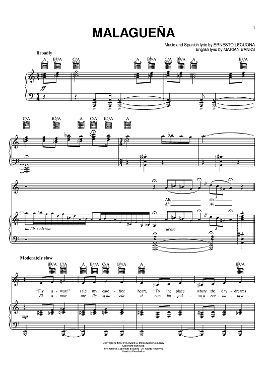 Digital Sheet Music for Malaguena by Ernesto Lecuona, Marian Banks scored for Piano/Vocal/Chords; id:382152