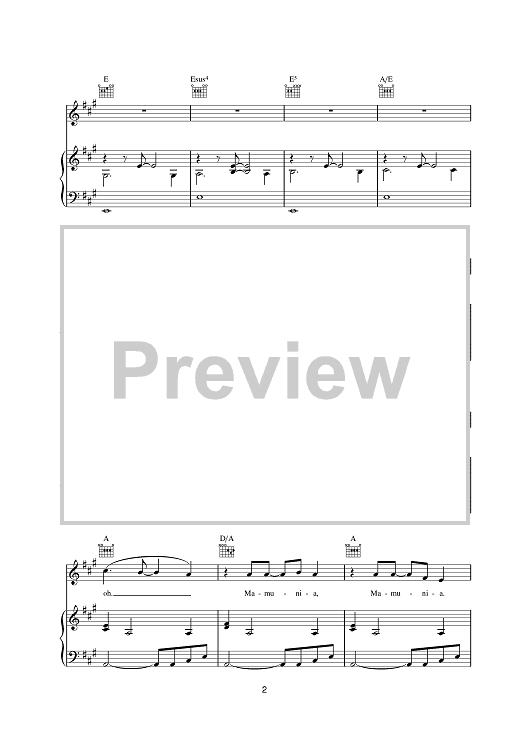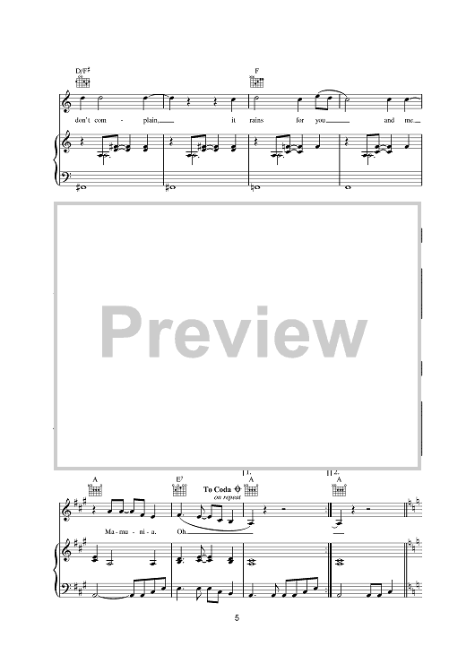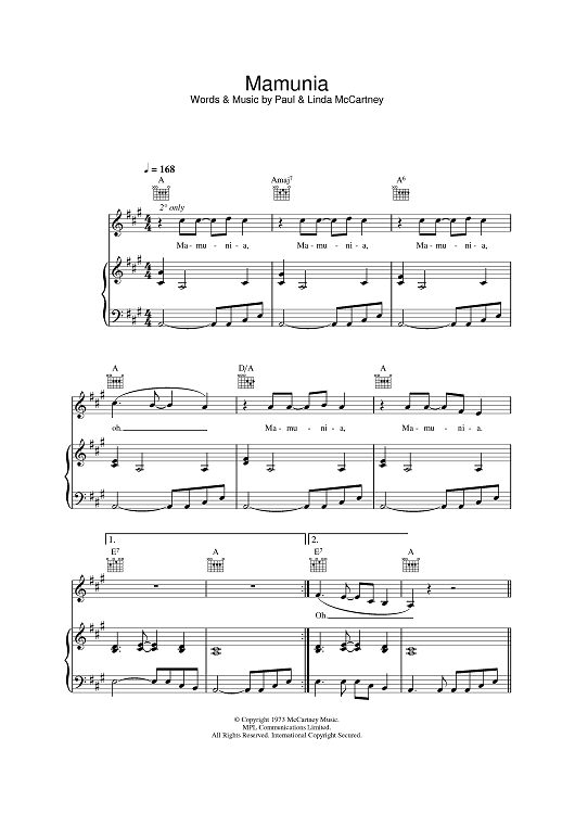Digital Sheet Music for Mamunia by Wings scored for Piano/Vocal/Chords; id:378239