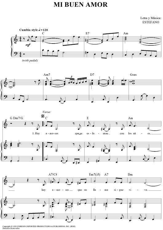 Digital Sheet Music for Mi Buen Amor by Gloria Estefan, Estéfano scored for Piano/Vocal/Chords; id:441295
