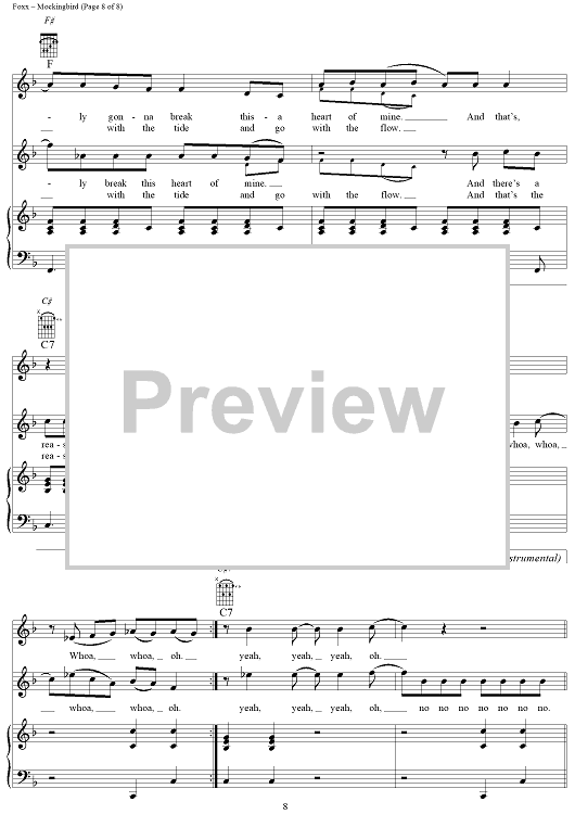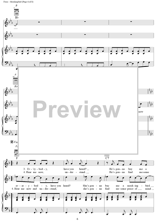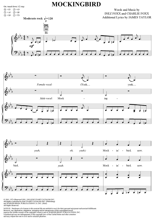 Digital Sheet Music for Mockingbird by Carly Simon, James Taylor, Charlie Foxx, Inez Foxx scored for Piano/Vocal/Chords; id:308984