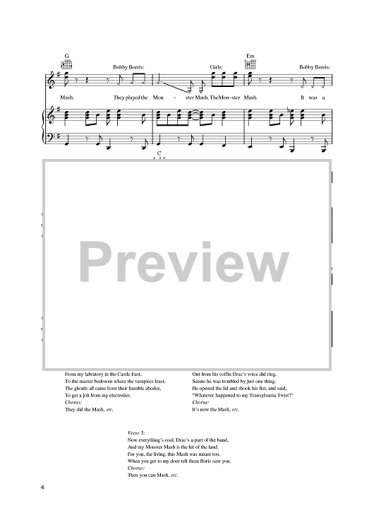 Digital Sheet Music for Monster Mash by Leonard Capizzi, Bobby "Boris" scored for Piano/Vocal/Chords; id:394459