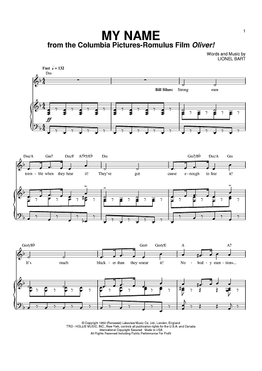 Digital Sheet Music for My Name by Lionel Bart scored for Piano/Vocal/Chords; id:390868
