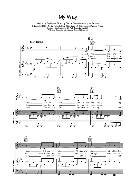 Digital Sheet Music for My Way by Frank Sinatra scored for Piano/Vocal/Chords; id:378845