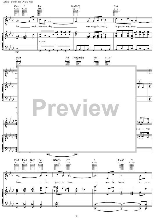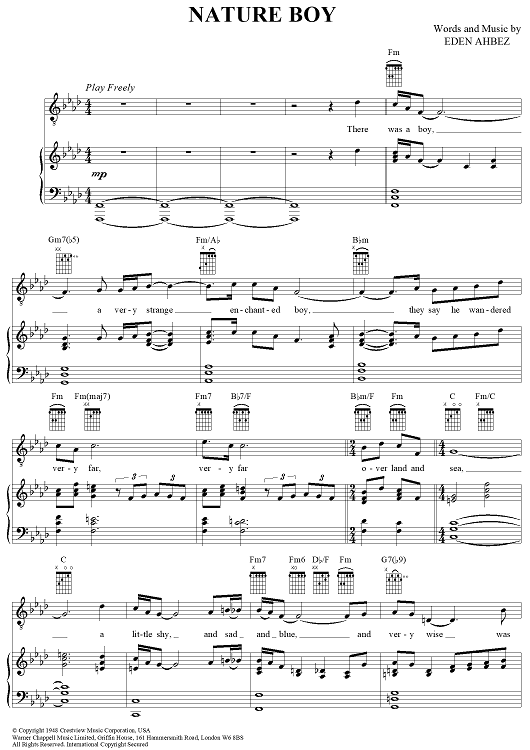 Digital Sheet Music for Nature Boy by David Bowie, Eden Ahbez scored for Piano/Vocal/Chords; id:365467