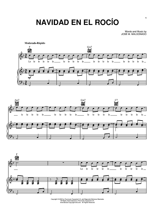 Digital Sheet Music for Navidad En El Rocío by Jose M. Maldonado scored for Piano/Vocal/Chords; id:369816
