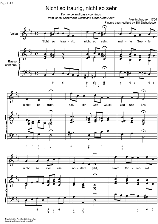 Digital Sheet Music for Nicht so traurig, nicht so sehr by Johann Anastasius Freylinghausen, Eilif Zachariassen scored for Voice/Continuo; id:325950