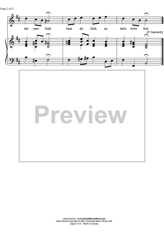 "Nicht so traurig, nicht so sehr" Sheet Music by Johann Anastasius Freylinghausen