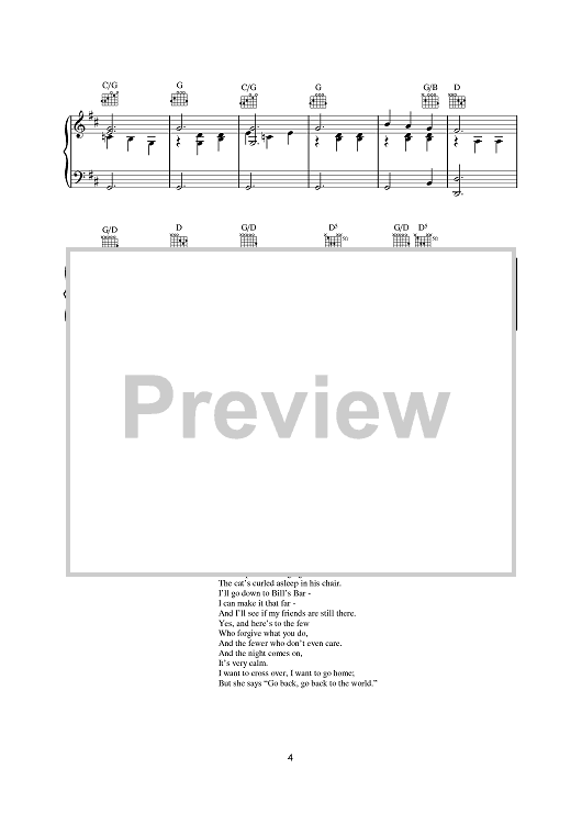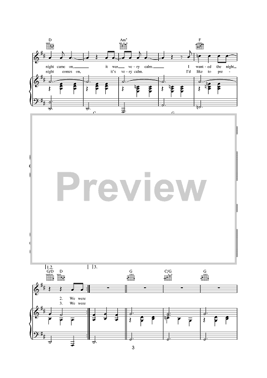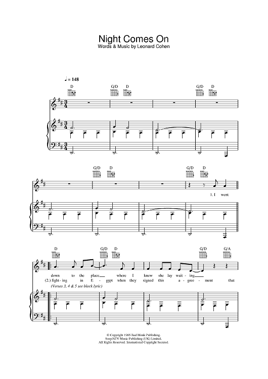 Digital Sheet Music for Night Comes On by Leonard Cohen scored for Piano/Vocal/Chords; id:380889