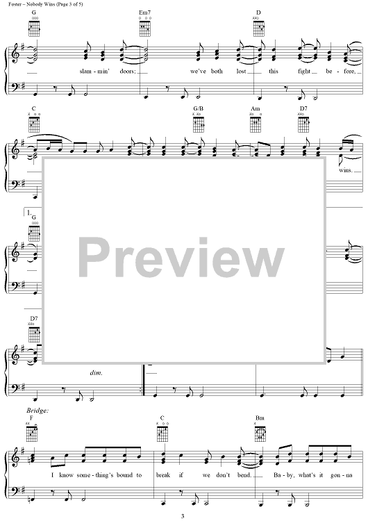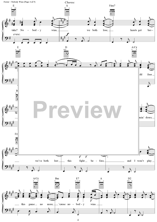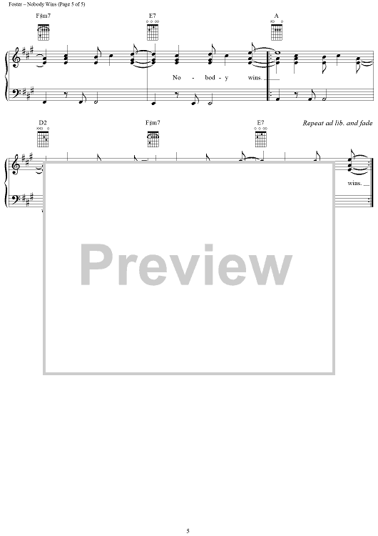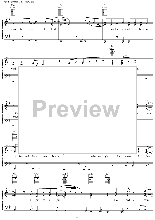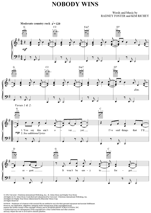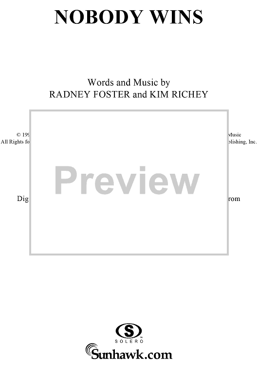 Digital Sheet Music for Nobody Wins by Kim Richey, Radney Foster scored for Piano/Vocal/Chords; id:285514