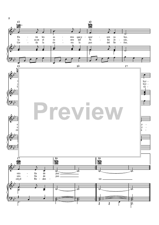 Digital Sheet Music for Noche De Paz (Silent Night) by Franz Xaver Gruber, Josef Mohr scored for Piano/Vocal/Chords; id:369823