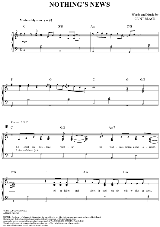 Digital Sheet Music for Nothing's News by Clint Black scored for Piano/Vocal/Chords; id:288341