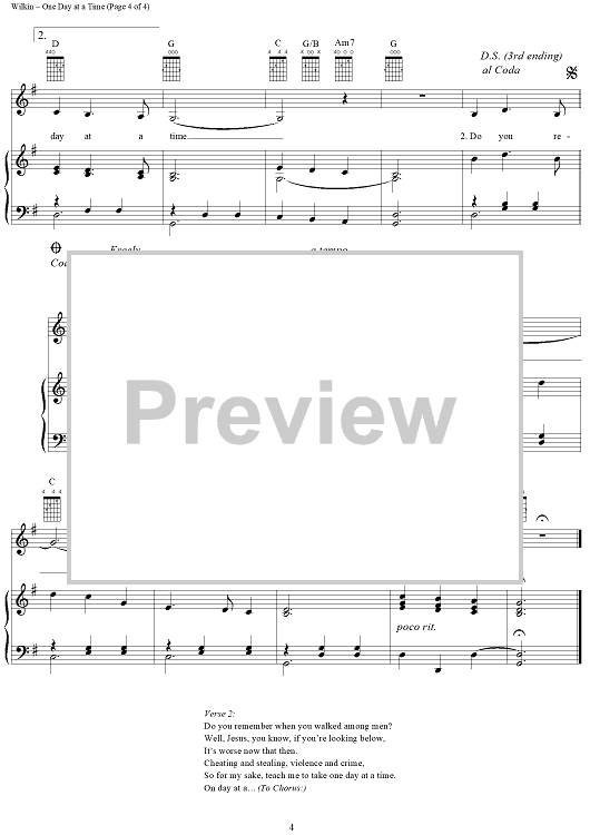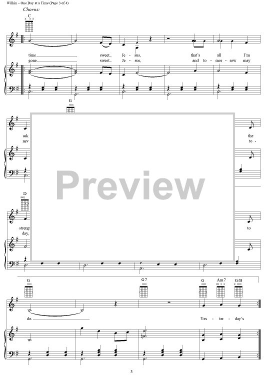 Digital Sheet Music for One Day at a Time by Marijohn Wilkin, Kris Kristofferson scored for Piano/Vocal/Chords; id:263818