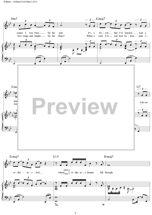 "Ordinary Fool (Bloucie's Blues)" Sheet Music by Paul Williams