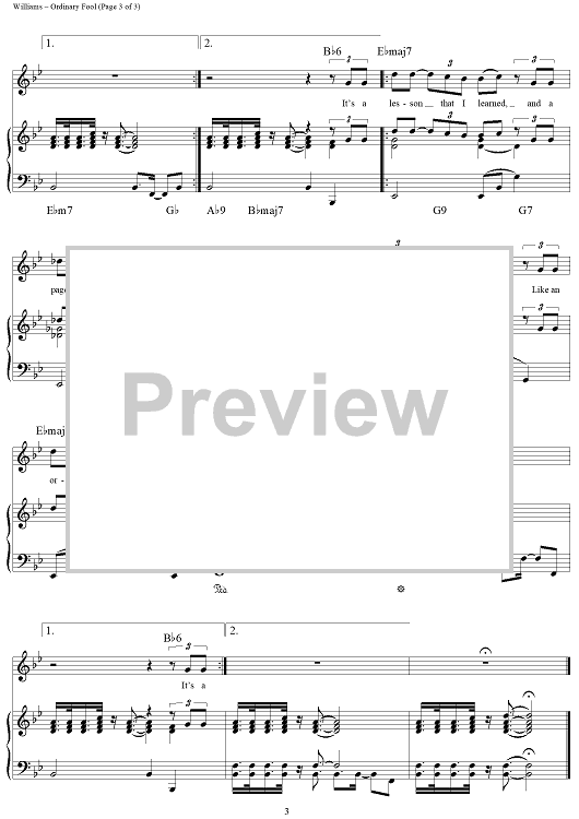 Digital Sheet Music for Ordinary Fool (Bloucie's Blues) by Paul Williams scored for Piano/Vocal/Chords; id:262903