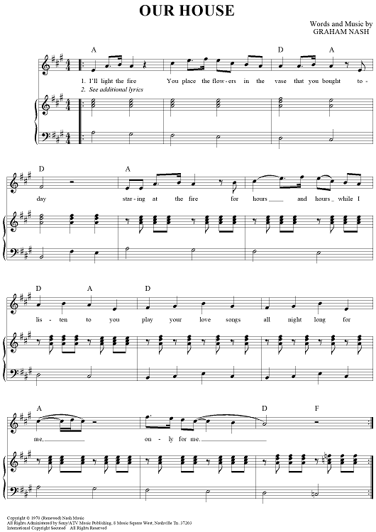Digital Sheet Music for Our House by Graham Nash, Crosby, Stills, Nash & Young scored for Piano/Vocal/Chords; id:112256