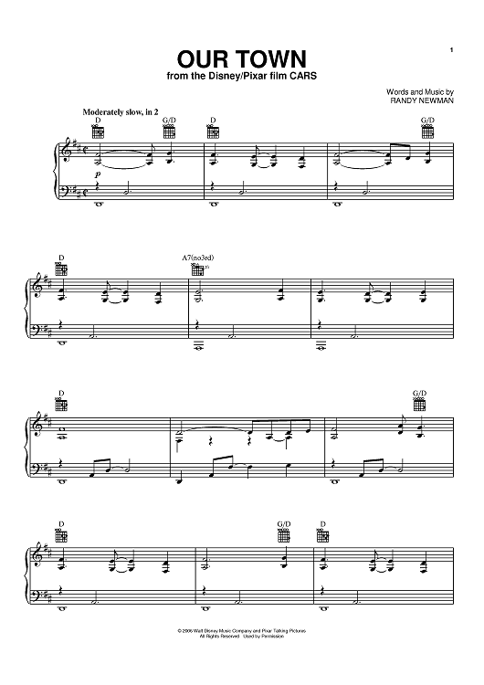 Digital Sheet Music for Our Town by James Taylor, Randy Newman scored for Piano/Vocal/Chords; id:390877