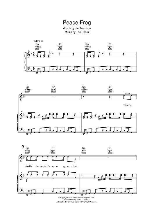 Digital Sheet Music for Peace Frog by The Doors, Jim Morrison, Robbie Krieger scored for Piano/Vocal/Chords; id:390960