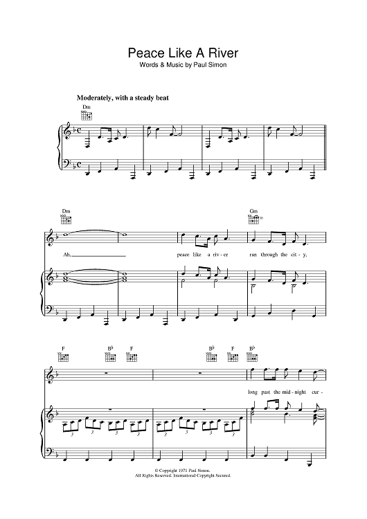 Digital Sheet Music for Peace Like A River by Paul Simon scored for Piano/Vocal/Chords; id:390947