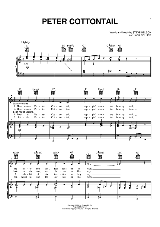 Digital Sheet Music for Peter Cottontail by Steve Nelson, Jack Rollins scored for Piano/Vocal/Chords; id:368756
