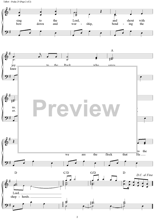 Digital Sheet Music for Psalm 95 (Come Worship the Lord) by John Michael Talbot scored for Piano/Vocal/Chords; id:112474