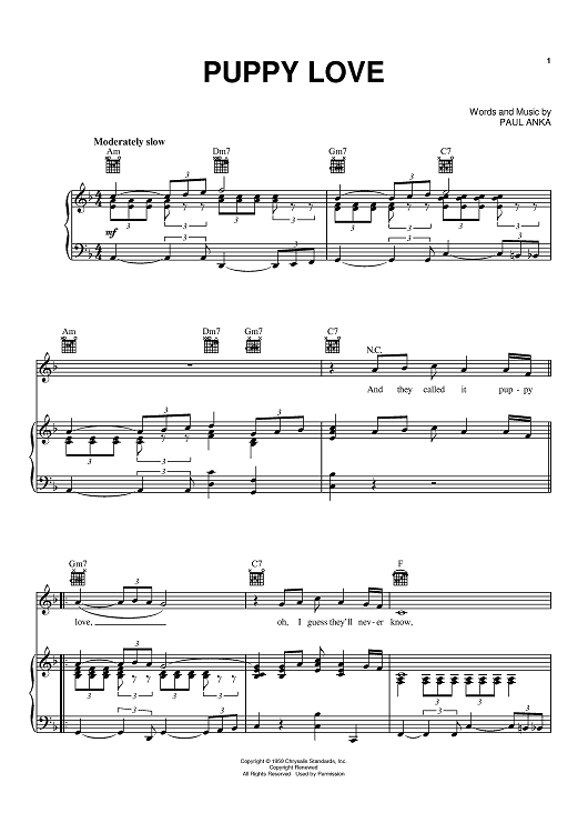Digital Sheet Music for Puppy Love by Donny Osmond, Paul Anka scored for Piano/Vocal/Chords; id:390913