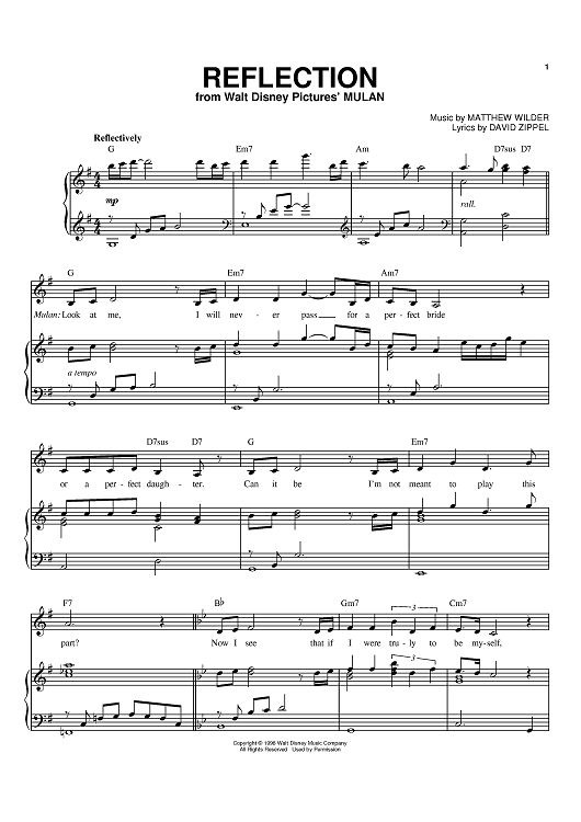 Digital Sheet Music for Reflection by David Zippel, Matthew Wilder, Christina Aguilera scored for Piano/Vocal/Chords; id:370048